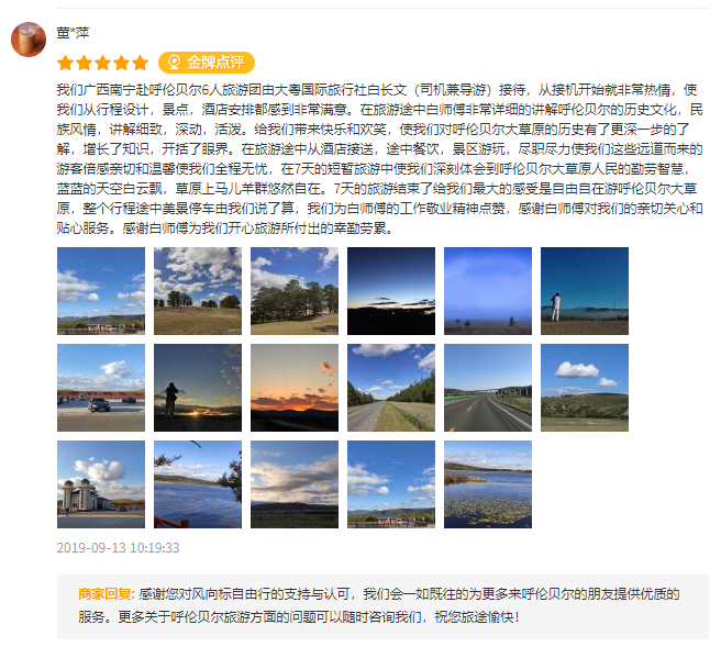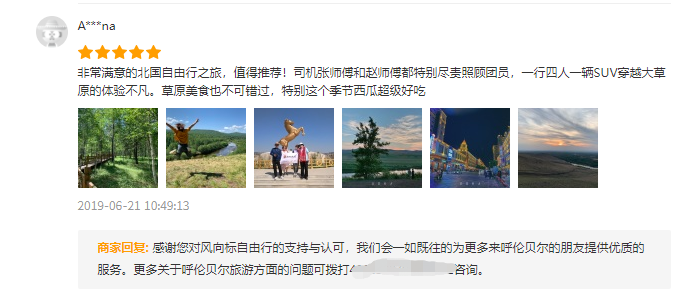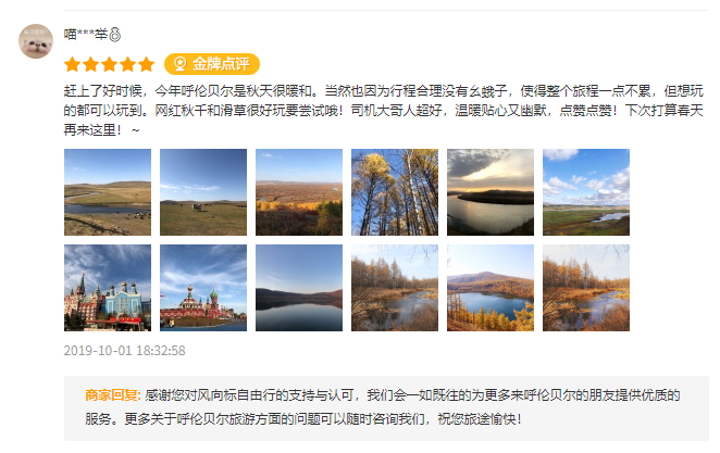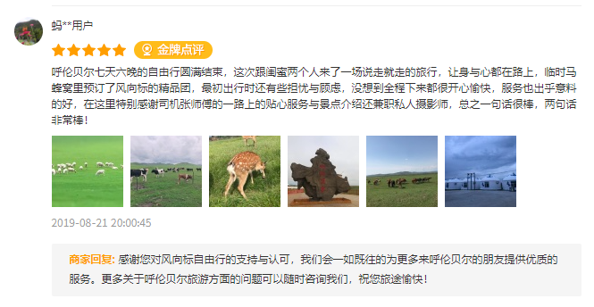 风向标扎根呼伦贝尔,凭借我们多年丰富的经验、成熟的业务优势,以及深厚的品牌基础,开发出更多符合市场需求、品质卓越、充满朝气的创新型旅游产品,坚持用品质旅游的理念给旅游者带来高品质的精神享受,用匠心精神做旅游,让客户高兴而来、满意而归 !