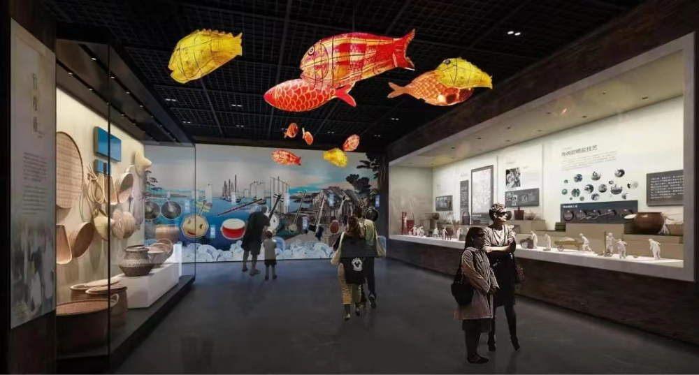 中国海洋渔文化馆从“海史遗珍”“海丝遗船”到“石浦鱼市”“渔家印象”再到“渔光重现”“渔家信俗”,中国海洋渔文化展示馆分4层布展,如同一个海洋渔文化的生态“博物院”。