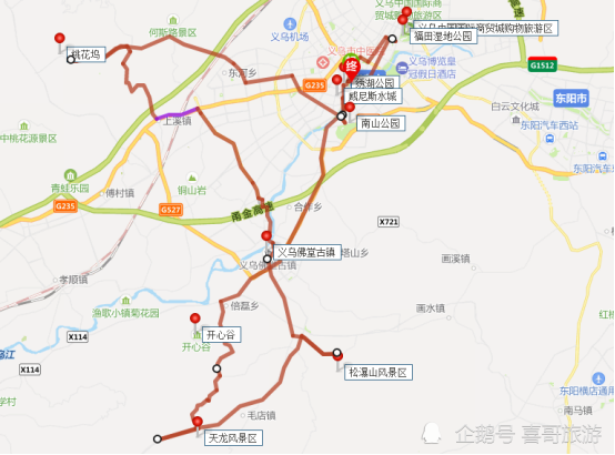 2、义乌市十大景点自驾游行程路线:义乌市-福田湿地公园-义乌中国国际商贸城购物旅游区-绣湖公园-威尼斯水城-南山公园-桃花坞-义乌佛堂古镇-开心谷-天龙风景区-松瀑山风景区-义乌市。