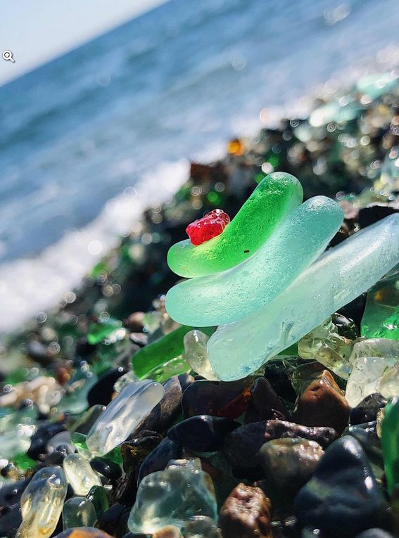 早在苏联时期,这片海滩曾是一处垃圾场,主要存放的废品是伏特加酒瓶、啤酒瓶和大量废弃的瓷器。尖锐的玻璃制品堆满了沙滩,来到这片海滩上的人,稍有不慎就会被割伤。此后几十年,太平洋沿岸的海浪不断冲刷,带着棱角的旧玻璃被反复打磨、碰撞,最终才变得像现在这么光滑,原本是人类的污染行径,被大自然改造成了神奇的美景,只能让人感慨大自然果然是鬼斧神工。