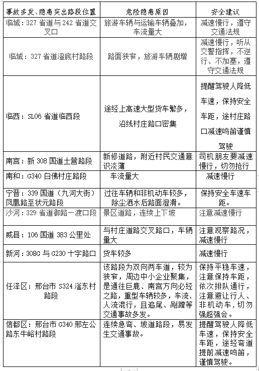 武邑县易拥堵路段:建设路与新华街交叉口附近、106国道与宁武路交叉口附近。