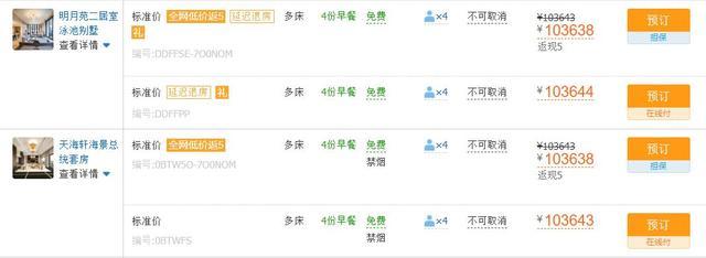 三亚一家酒店的“睡眠主题房”在淡季期间价格为249元一晚,在除夕当晚则为1186元一晚,暴涨近4倍。在2017年春节,曾有媒体报道过三亚10万元1晚的“天价客房”,目前AI财经社仍能搜索到该价位的客房,相比于淡季的房价,该类型客房在春节期间的房价翻了3倍以上。