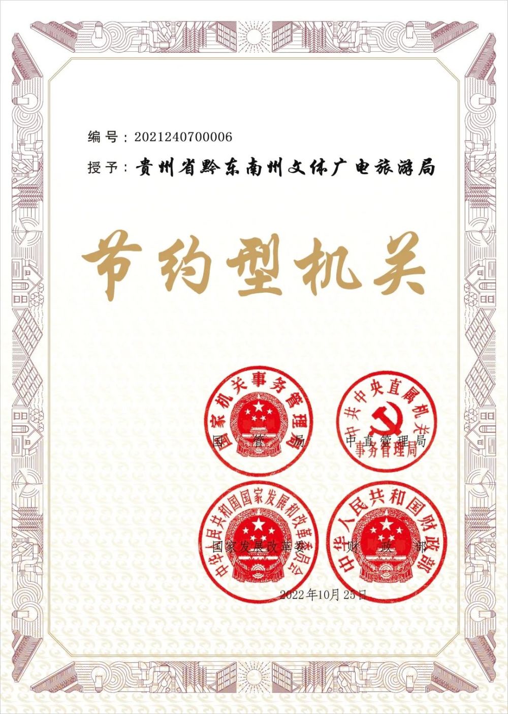 手机访问:wap.265xx.com喜讯|黔东南州文体广电旅游局被国家四部委联合授予“节约型机关”称号