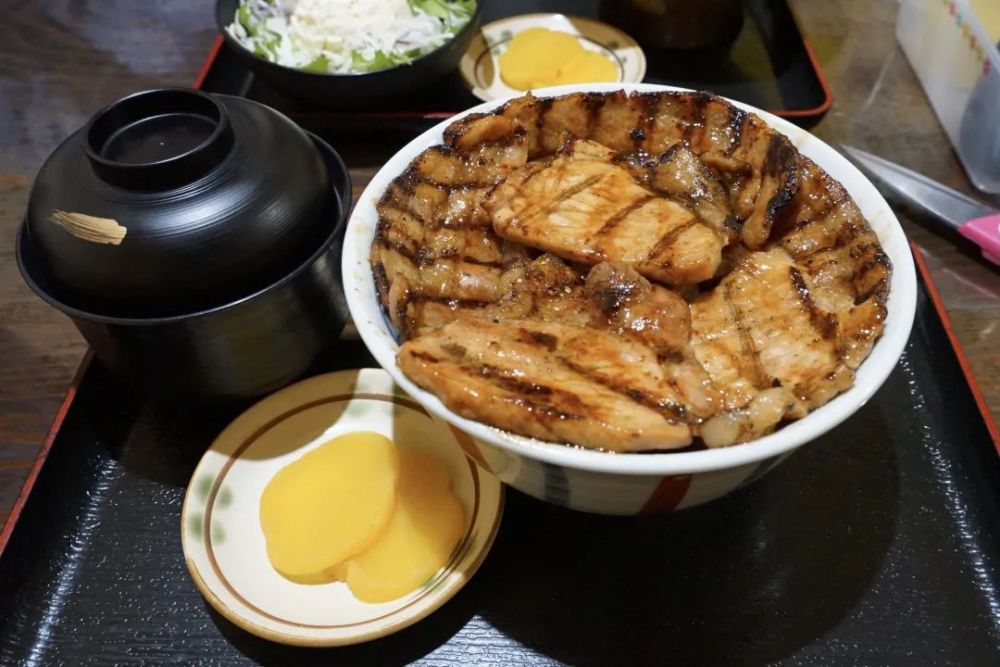 这道菜发祥于曾是养猪业发达地区的带广市,相当有分量的一片片厚切猪肉,在铁板或烤网上炭火炙烤后,刷上蒲烧鳗鱼风味的甜辣酱盖在饭上,最后撒上香葱。每块肉都鲜嫩多汁,烤得略带焦香,加上美味的日本大米,就是这么简单粗暴,大口干饭的爽感!