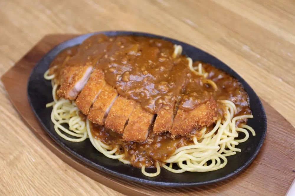 这道菜的特色就是大份且热乎乎地吃完!有的店还可以选择大块炸鸡排盖上肉酱意面,鸡肉加猪肉酱也许会有不同的火花。
