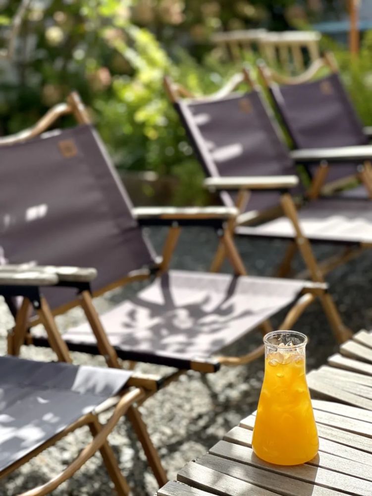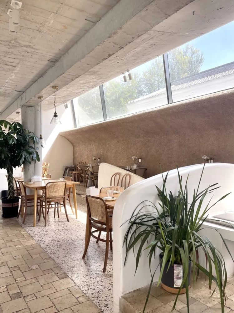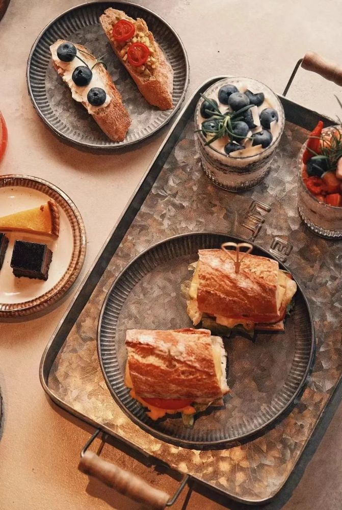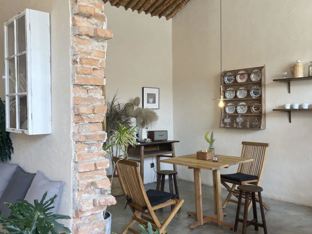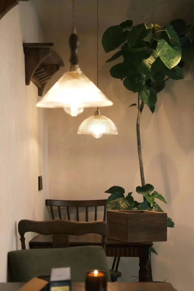 屋内穿过咖啡制作的房间就是一个小院,被老板打理得格外有趣。小院的中央是遮阳伞下的几组桌椅,绿植鲜花相映成趣,妥妥的露营风。小院的北侧是一个三开间的室内用餐区,房间内的设计是简朴的乡村复古风,摆设和家具都是主理人精心从各个渠道淘来的,非常有格调。