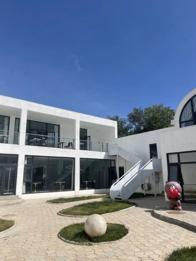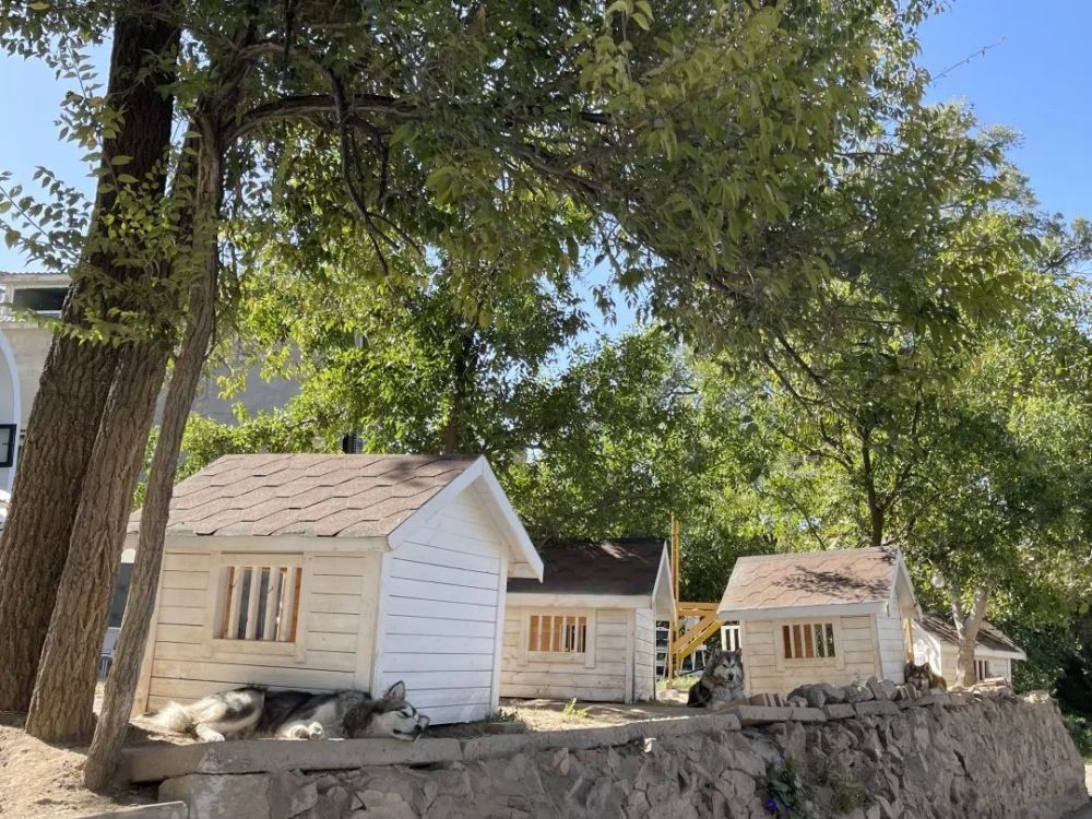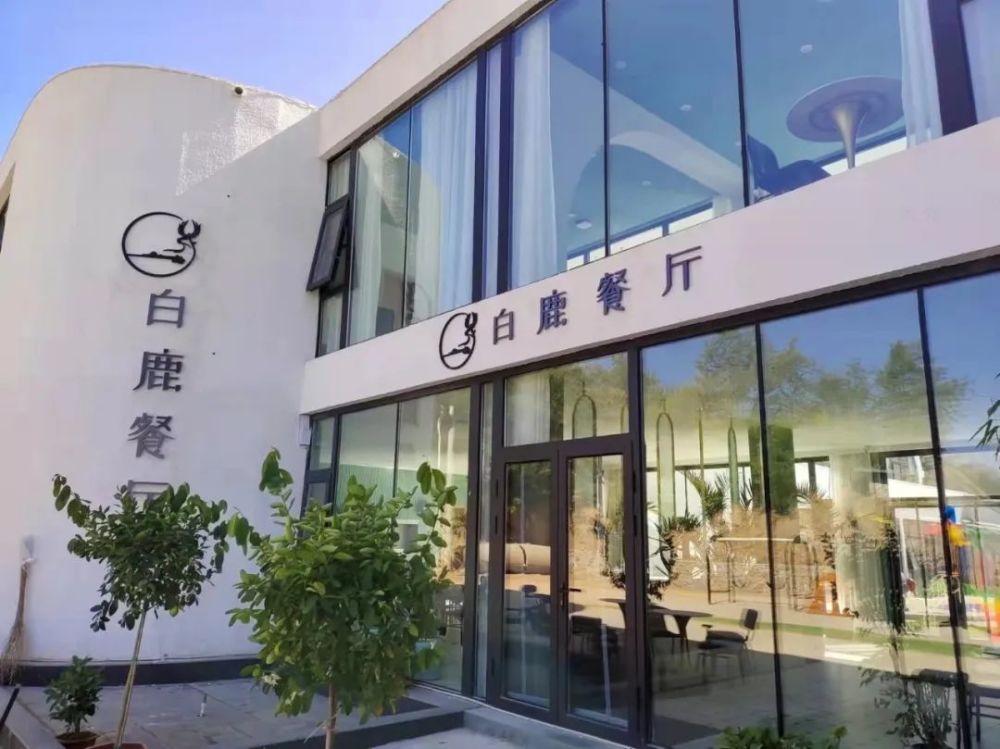 由京藏高速在导航的指引下转入一条进村的小路,你就会被路两侧依旧盛开的繁花所吸引,一路簇拥着来到目的地“白鹿餐厅”,这里实则集民宿、餐厅及咖啡为一体。当你在路边把车挺好,一定会被餐厅门口马路牙子上的几只阿拉斯加大狗狗所吸引,一狗一屋慵懒的享受它们的躺平“狗”生。