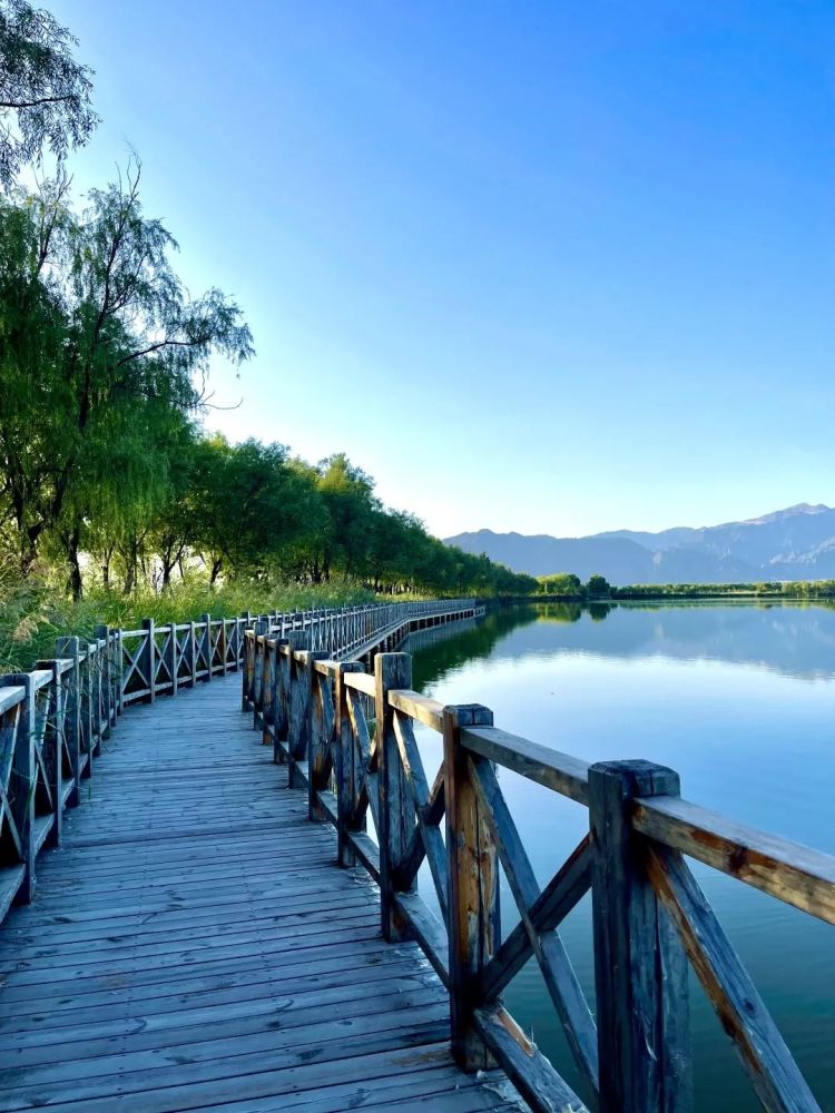 进入园区,你会惊叹于远处延绵不绝的群山犹如水墨画,将这个湖泊半包裹着,形成了一道天然背景,湖面波光粼粼,通往湿地深处的小径树影婆娑。沿着湖边的步道可以漫不经心的走走停停,环湖一周也不会过于疲累。园区内有几处观景台可以从不同的角度将美景尽收眼底。