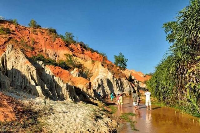 美奈的景点:白沙丘:这里是体验滑沙和驾驶的好地方;仙女溪:就是缩小版的美国科罗拉多大峡谷;婆萨努塔:历史悠久的占城佛塔。
