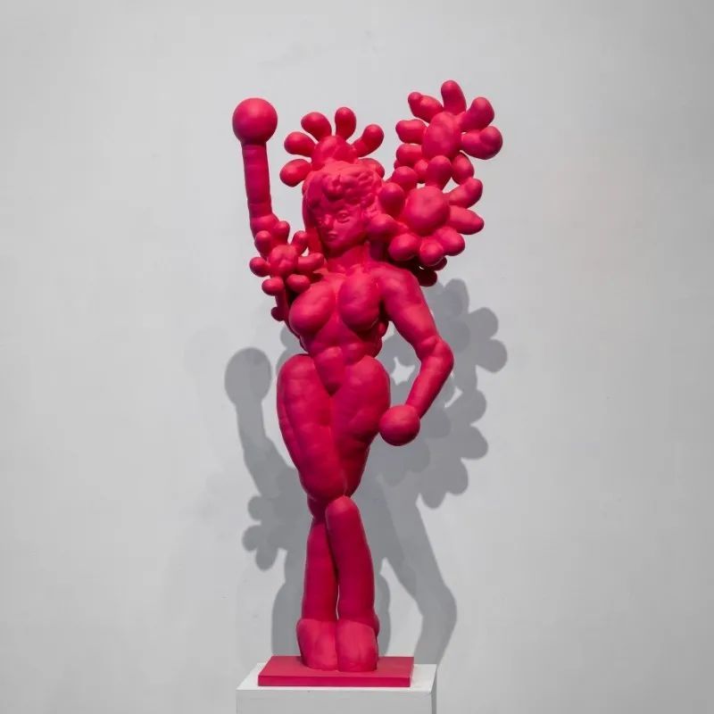 明亮的鲜艳配色带来视觉上的冲击力,奇异的造型充满动态感,在夜幕降临时刻走进美术馆,不由得令人幻想起闭馆后的展品是否是另一番精彩热闹的场景?