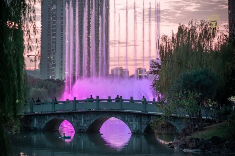 白鹿洲公园的广场,是光影秀的最佳观赏台。泉水、灯光跟随音乐激荡起伏,闪烁变幻,一场大秀为你呈现。