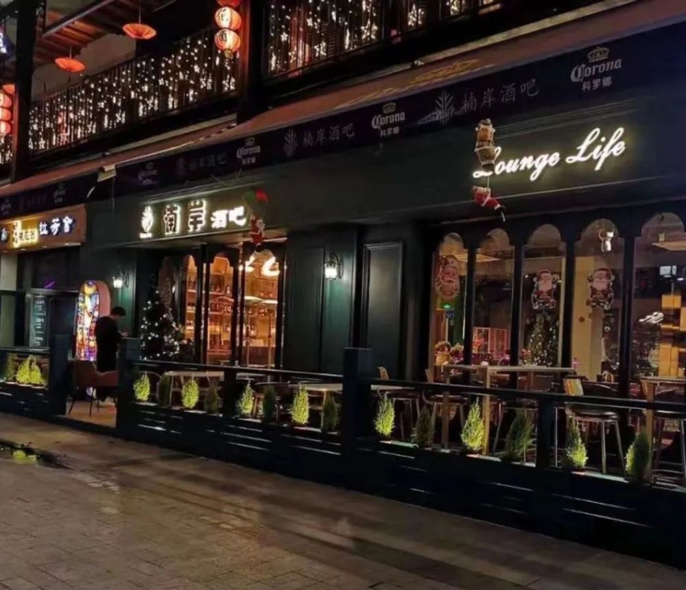 南塘街临河的一段有一条酒吧街,是装载都市人深夜情怀的场所。