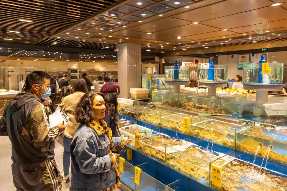 海鲜排挡的烟火气十足,顾客围着一缸缸生猛海鲜直接下单,这种一目了然的鲜活度就是最好的招牌。