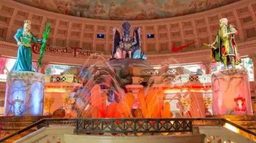 亚特兰蒂斯水舞声光秀,位于Strip大道和Flanmingo交接的凯萨宫的广场商业街,这里的喷水池秀,运用了水、火、灯光等各种特效,为大家讲述的是希腊神话中阿特拉斯王的孩子争夺王位的故事,感受那个时代的王权贵族。