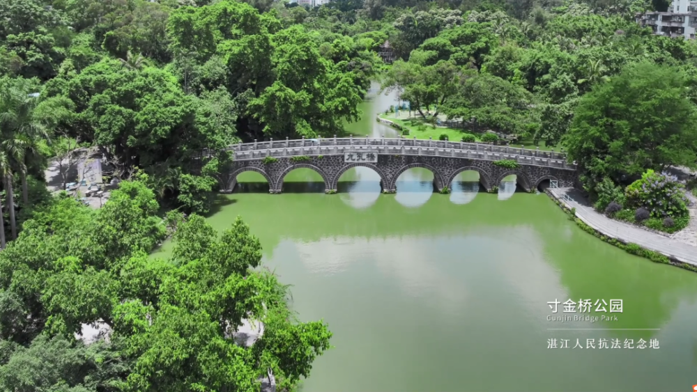 寸金桥公园始建于1958年,位于广东省湛江市赤坎区西侧,因邻近寸金桥而得名,是湛江八景之一"寸金浩气"。1961年,郭沫若到湛江题诗“一寸河山一寸金”,寸金桥桥名含中华国土寸土寸金不容外敌侵占之意,以纪念1898年湛江人民抗法斗争的英雄事迹,公园中心广场屹立着抗法英雄的塑像。