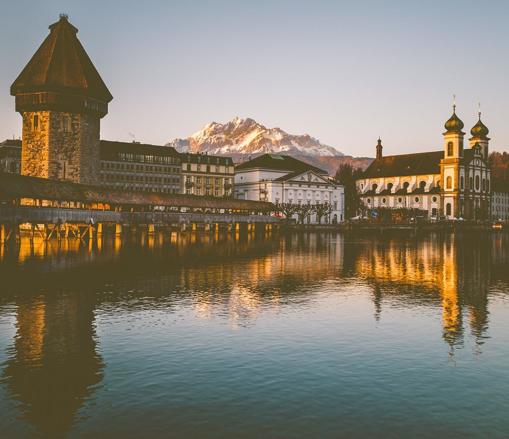 搭火车一小时,就可以从苏黎世到琉森,从火车站出站后可见湖畔美景,左手边就是卡佩尔木桥,是琉森的知名景点之一。木桥建于13世纪,保留中世纪风格,而且是个有顶盖的木造桥樑,桥的横眉上绘有120幅历史油画,这座桥将南北岸连接起来,全长204米,成为欧洲最长木桥,在古代可是个防御的屏障,游客可以漫步在桥上细赏周围风光,当然也可以搭船游湖,用另一种角度来欣赏琉森这个小城镇。