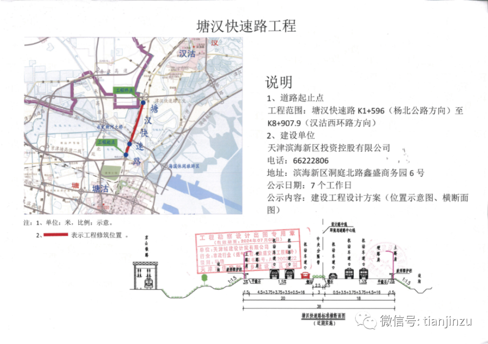 根据该公示,新建铁路天津至潍坊(烟台)铁路天津至潍坊段(天津段)共设置滨海站、滨海南站、大港油田站三个车站,滨海西1个动车所。项目天津段正线长度61.278公里,用地4890亩。