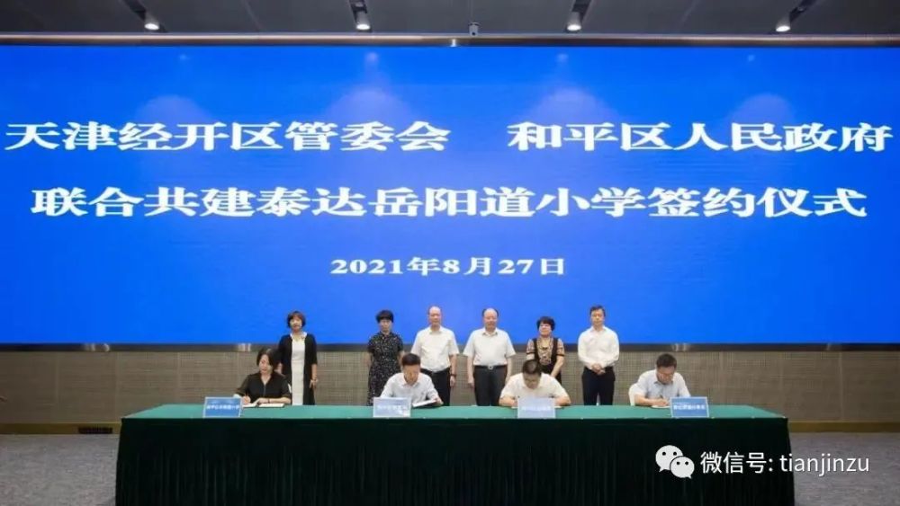 8月27日上午,天津经开区管委会携手和平区人民政府联合共建泰达岳阳道小学签约仪式在于家堡举行,天津基础教育百年名校——岳阳道小学正式落户经开区中心商务片区!