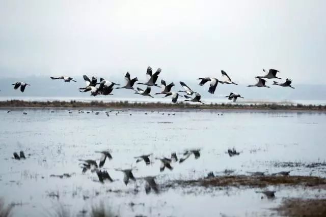 飞舞的黑颈鹤。新华社发 韩贤普 摄