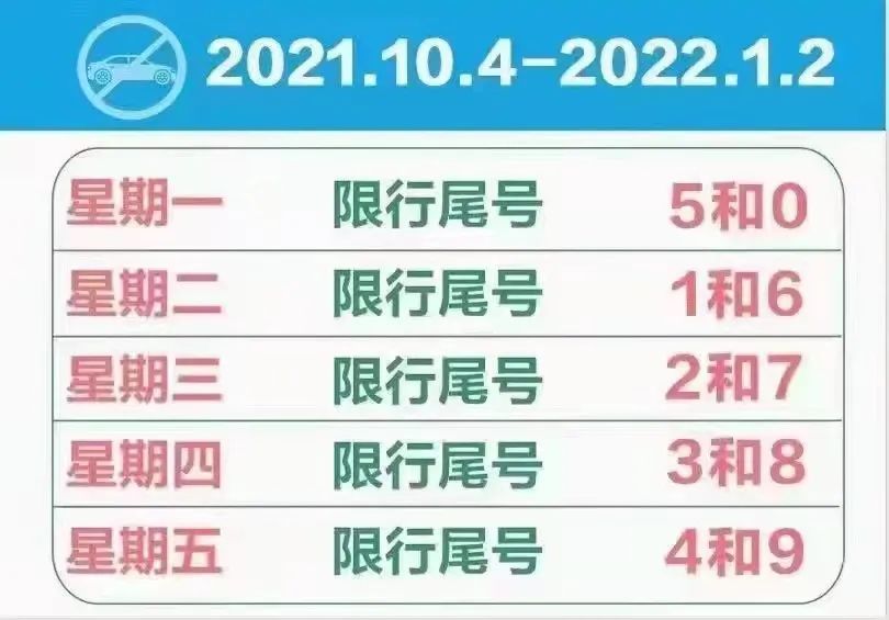 由于国庆节节假日10月1日-10月7日期间不限行,所以本轮尾号限行将从10月8号开始正式执行。