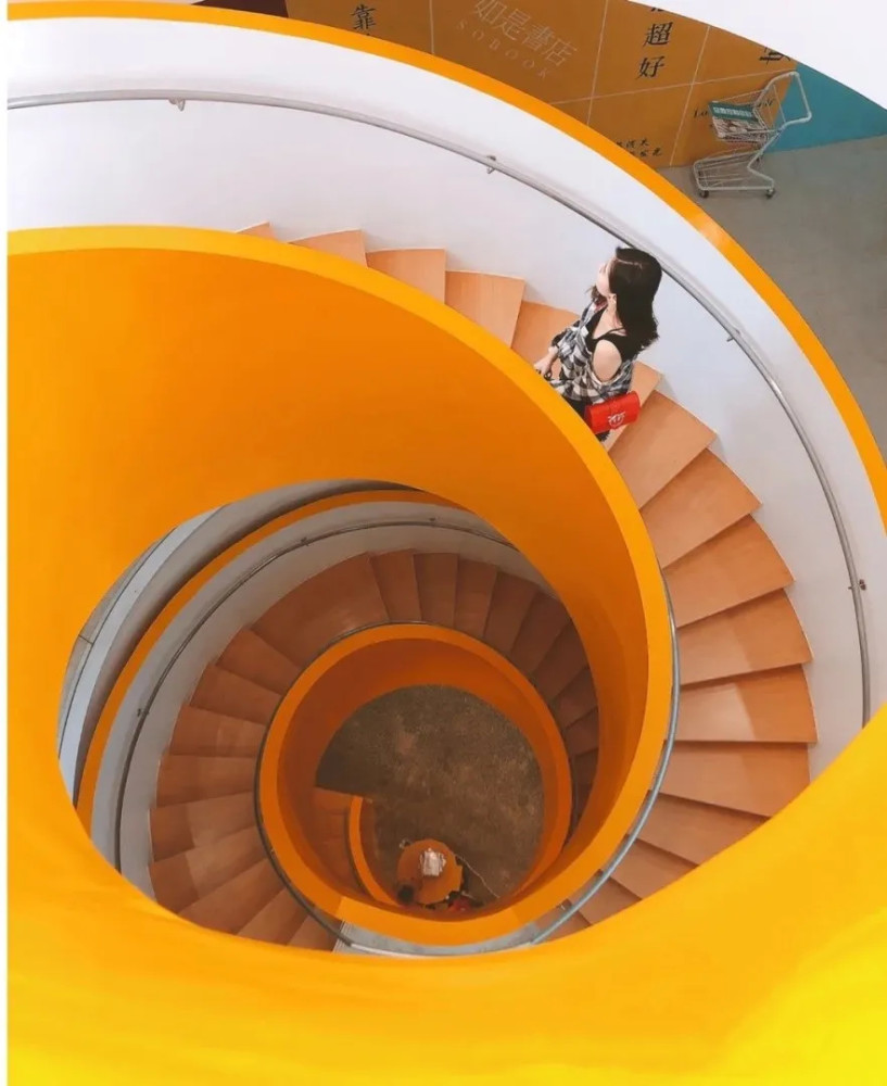 如是书店遍布青岛的大街小巷,但是城阳区的这家却美得让人惊艳。让人吸睛的亮黄色的旋转楼梯,充满了几何设计感,超级适合拍照。