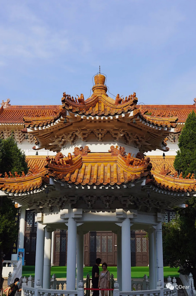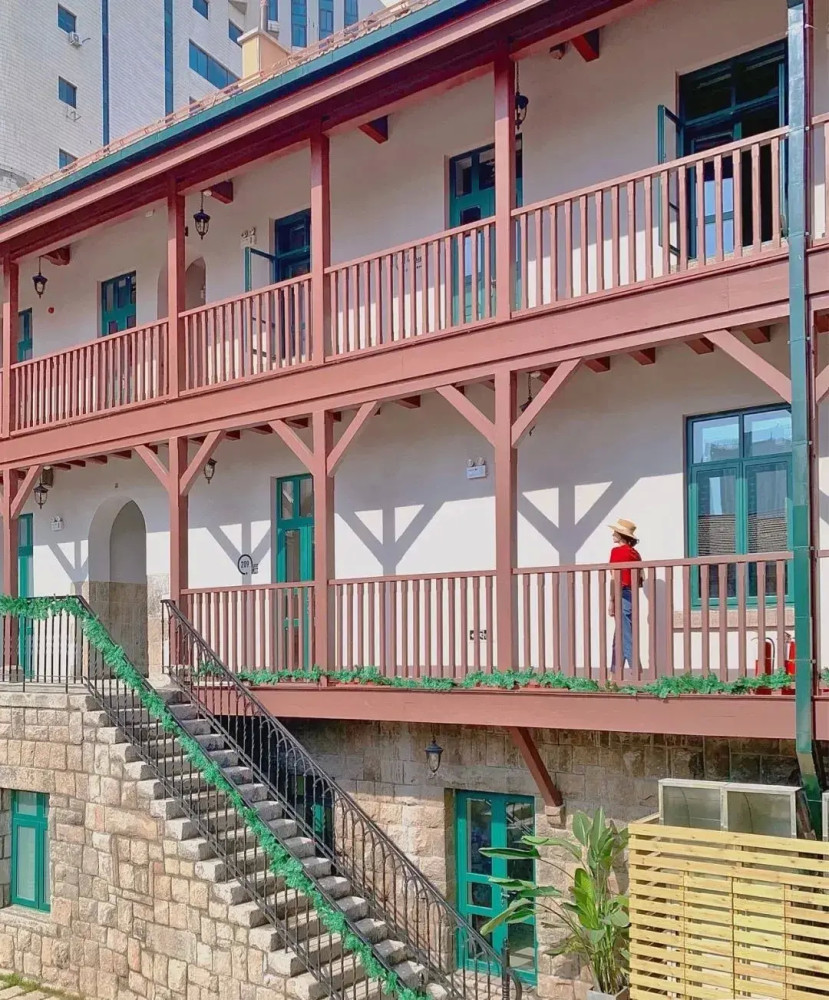 这座里院是青岛最大的单院落里院建筑,明快的红黄色调看起来十分有年代感,其中还有一条白色的甬道,尽头是一座法式建筑,充满了南法风情,很适合拍照。