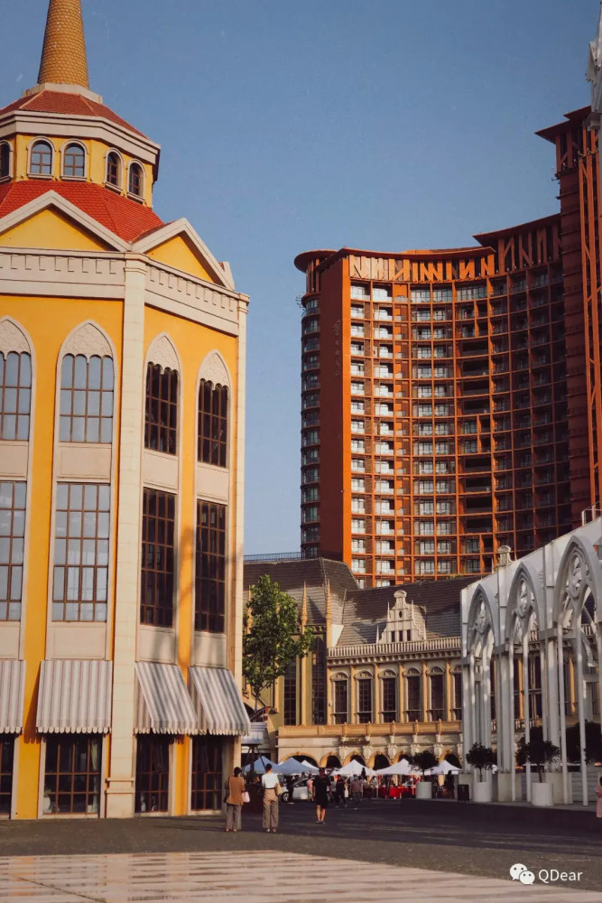 红树林度假世界坐落在灵山湖畔,这里有大片的仿欧式建筑群,天气好的时候,看起来像极了奥地利小镇,油画感十足。