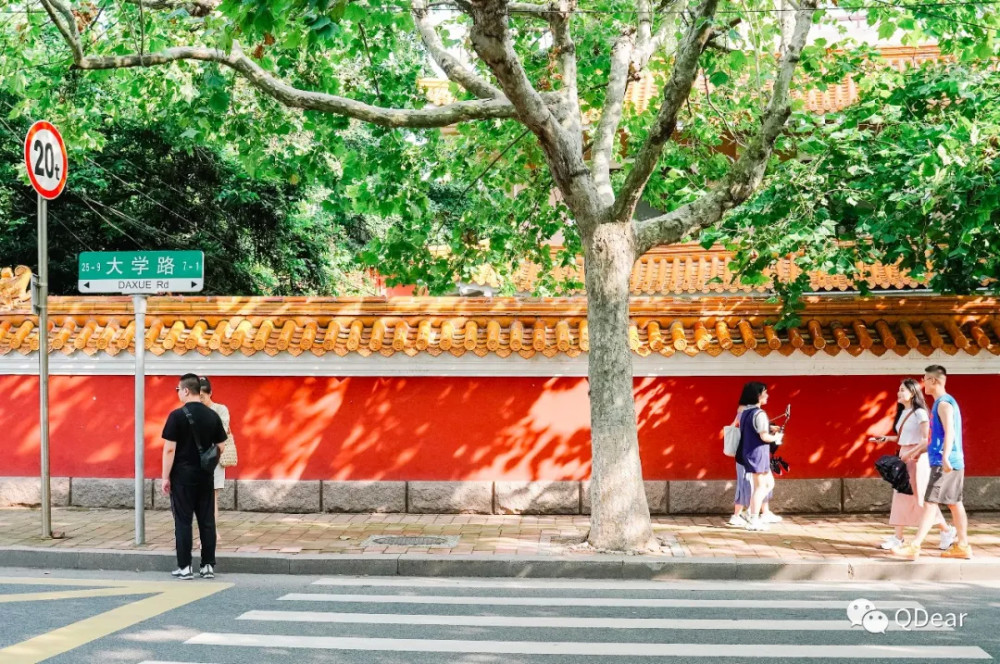 大学路上的网红墙,几乎列入了每个来青岛旅游人的打卡清单中。红墙琉璃瓦配上特色的字牌路标,古韵风中夹杂着一丝文艺。