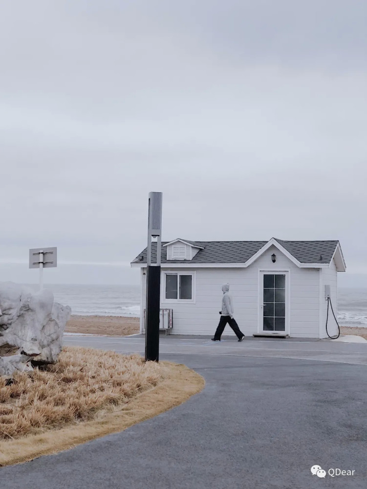 很多人都不知道,石老人海水浴场附近,还藏着一个网红打卡地,白色房子在这一片沙滩中尤为出彩,像极了文艺清新的济州岛。