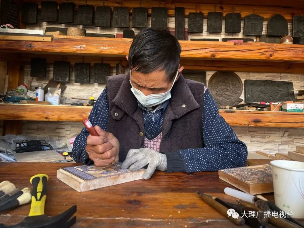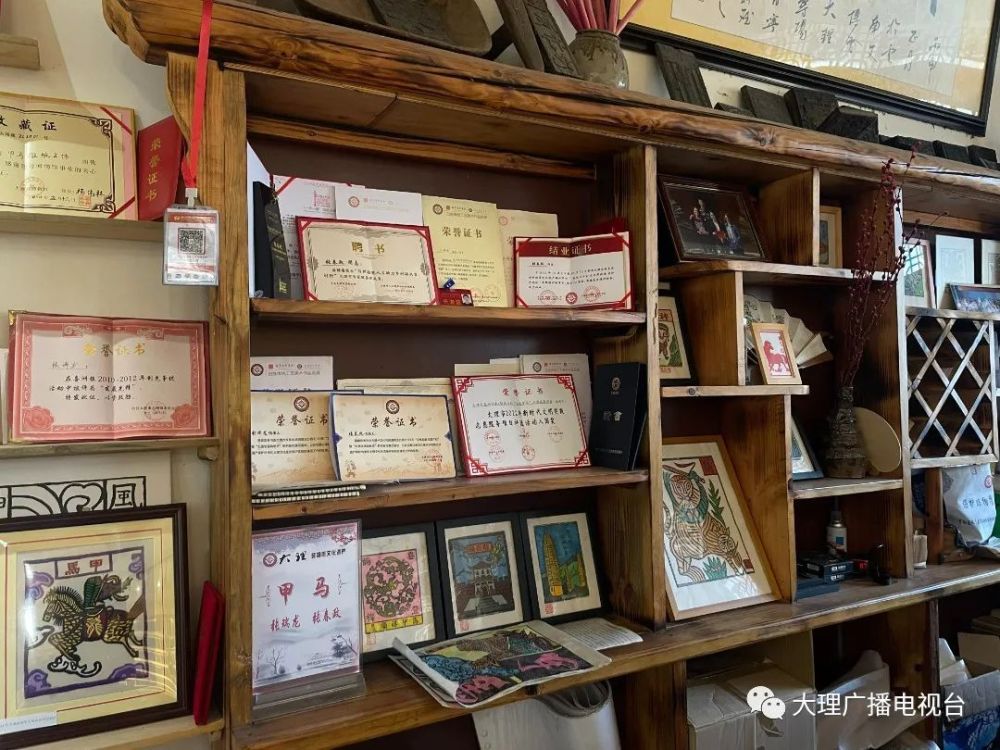 近年来,大理州开展了很多非遗进校园、进社区的活动,张家父子也积极参与其中。周城完小、下关一中初中部、下关四小等学校张瑞龙都去上过课,其中下关四小已经连续去了四年,教四年级和五年级,一周外教辅导四节课。首先是教理论,然后也会让学生自己画图、自己刻板,进行创作。