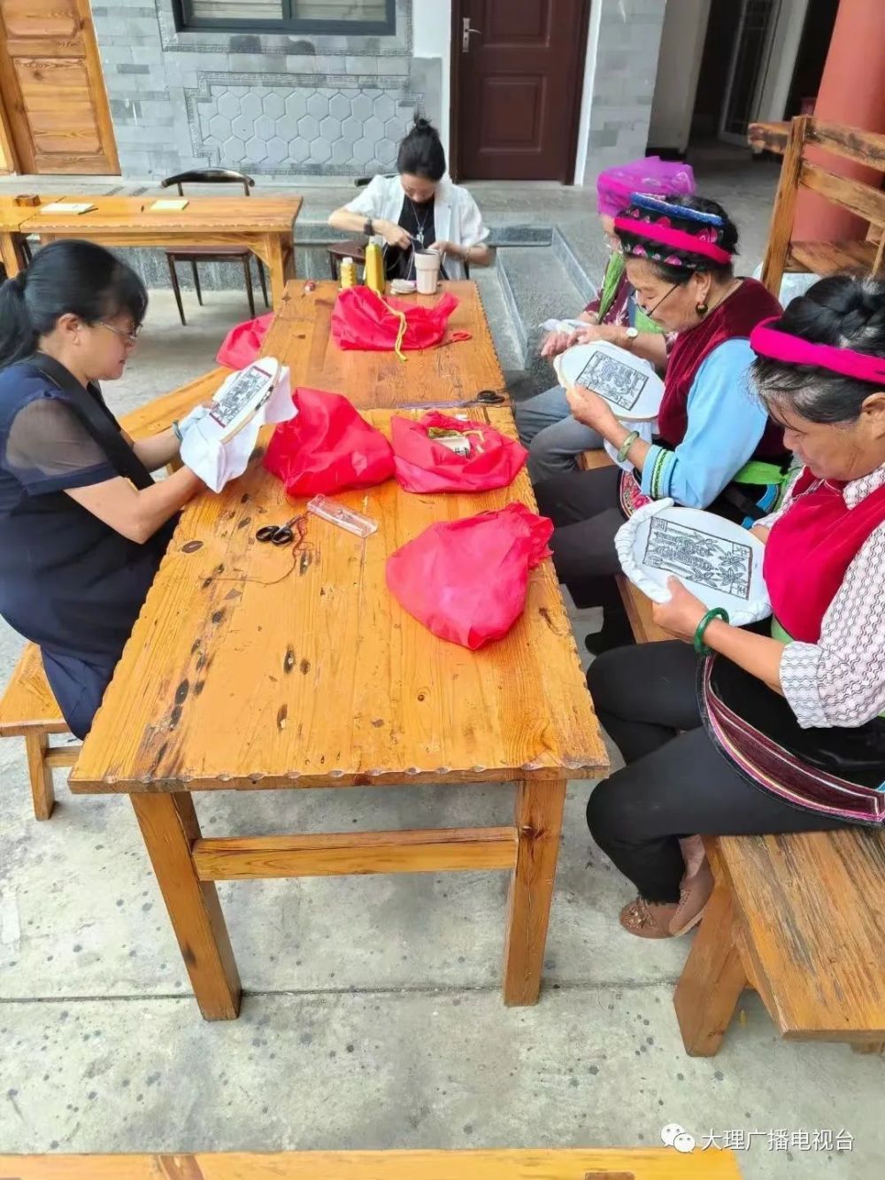 2021年就开始组织周围的村里的残疾人学习了,2022年开始系统地雇他们来干活。只要手能动、眼睛看得清就可以,男的雕刻,女的绣花、印刷和做书,根据他们长项来分工。有几个工人身体很单薄,出去打工也很难。