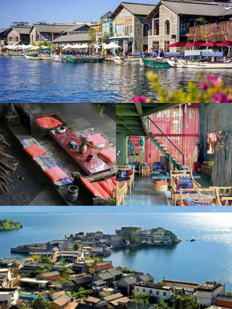 双廊古镇:三面环山一面临海,典型的白族渔村古镇,著名的玉几岛,杨丽萍老师的太阳宫、月亮宫/步行可到。