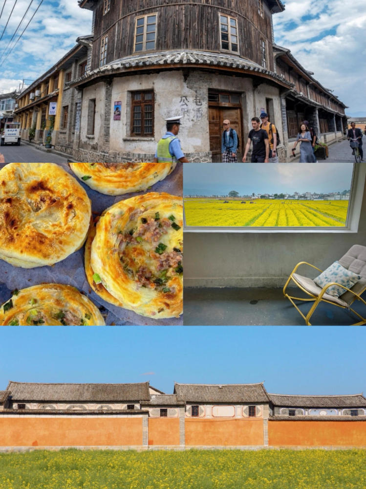 喜洲古镇:白族建筑保留最完整的古镇,春天看油菜花,秋天看稻田,仿佛回到童话世界,特产“喜洲粑粑”不要错过哦~