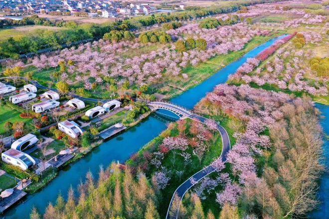 生态绿带东起丁桥大缺口,西至景区三里港,全长12.5公里,面积近千亩,百年历史的翁金公路横贯其中。绿带内有一公里的银杏林,3公里的樱花林,沿途块状分布红梅林、桂花林、格桑花海等花草树木,景观鱼塘、茅屋驿站星罗密布,绿带内全程铺设彩色自行车道,同时设有房车营地、帐篷营地、重走长征路红色营地等主题营地。这里就是生态和健康的代名词。待到樱花如雪,银杏叶黄,兰薰桂馥......一起在骑行、漫步中看尽四季风景。