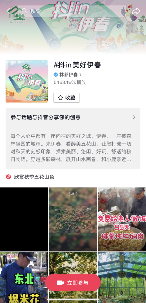 如果你也被视频中的景色吸引,那就参与到话题中来吧,到伊春拍摄五花山色或分享身边的秋季美景,视频添加话题并关注账号“林都伊春”即可参与成功。