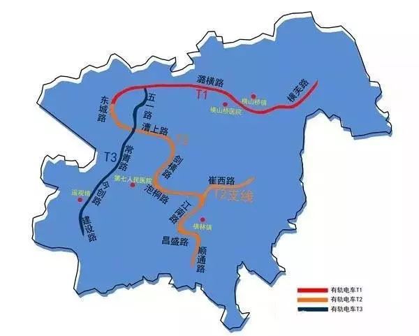 按照规划,经开区范围内有轨电车线网包含T1、T2和T3三条线路,线网总长度38.5km,全部为地面线路。