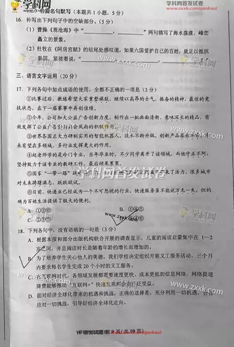 湖南高考语文试题第9页
