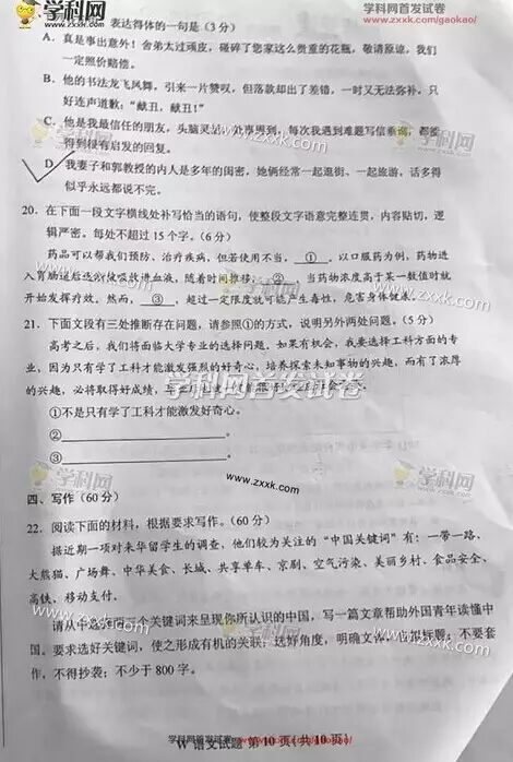 湖南高考语文试题第10页