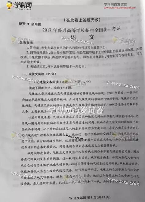 2017年全国乙卷(全国I、1卷)语文高考试题及答案(非官方)。适用地区:河南、河北、山西、江西、湖北、湖南、广东、安徽、福建。