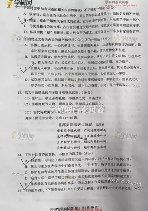 湖南高考语文试题第8页