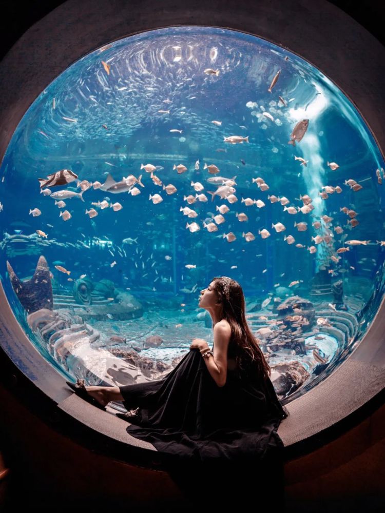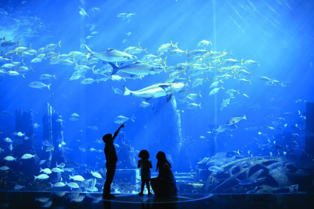 30个大小各异的互动展示池汇聚着数万尾海洋精灵,其中主观赏池有着13500吨的蓄海水量,16.5米长的落地幕墙,能让你尽情感受海洋的无限魅力和奥妙奇景。