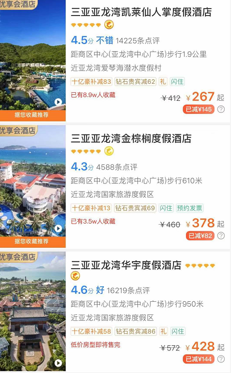 再看酒店,大部分价格已经回落到平时的淡季价格,只有春节假期里的一半甚至三分之一!