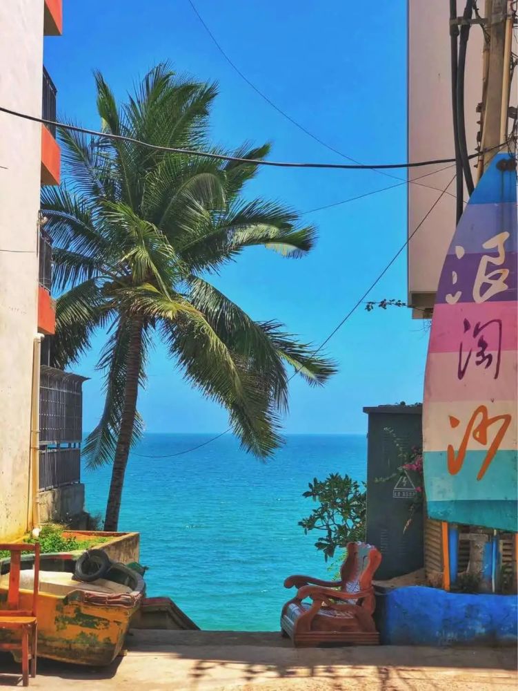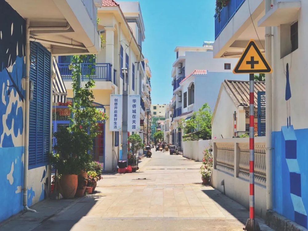 天涯镇被称为三亚的“小圣托里尼”,是一座充满地中海风情的海边小镇,蓝白色调,格外小清新。