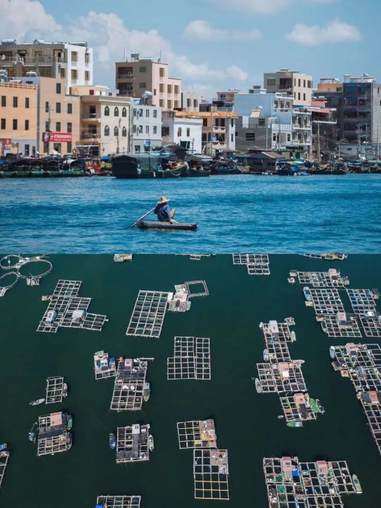 疍家鱼排位于陵水县,是疍家捕鱼人的特色文化。海面上密密麻麻布满了数百个船屋,船屋连成一片,当地人在上面来去自如,壮观又富有烟火气。