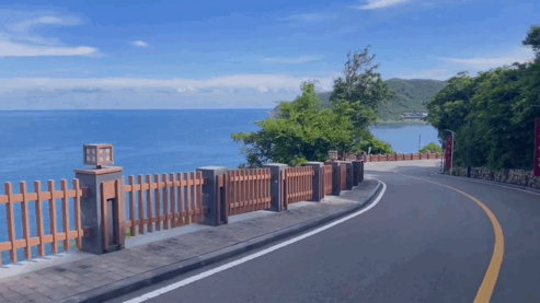 沿海公路全程不到7km,沿着盘山公路一路盘旋向上开,景色也越发豁然开阔。