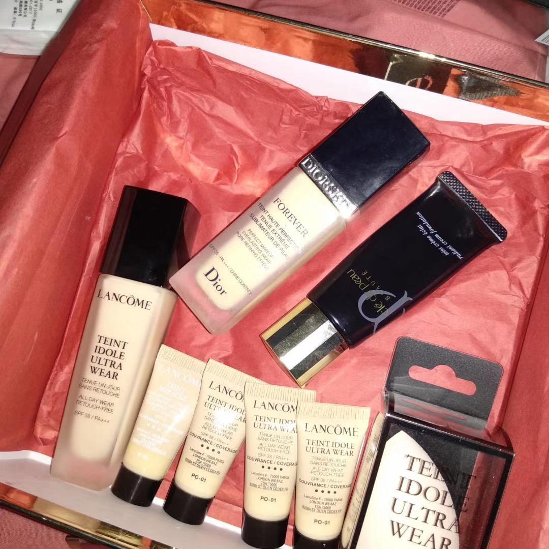 从高一的时候入了第一支大牌粉底液之后,基本上就入了大牌的坑。粉底液有三支,迪奥的forever 、兰蔻的持妆和cpb的粉霜。其中好用程度 cpb>迪奥>兰蔻。兰蔻的热门色号po01对我来说太白了,但好在它轻薄,遮瑕力也还可以。
