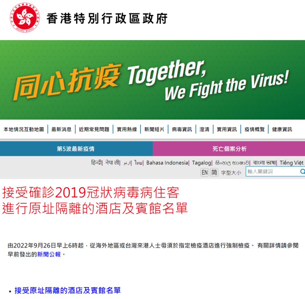 二、如果旅客入住的是接受确诊2019冠状病毒病住客进行原址隔离的酒店及宾馆(https://www.coronavirus.gov.hk/chi/designated-hotel-list.html),可以选择在酒店原址隔离。