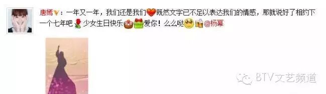 昨天,杨幂迎来29岁生日。当天凌晨,唐嫣微博送上祝福:“一年又一年,我们还是我们,既然文字已不足以表达我们的情感,那就说好了相约下一个七年吧,少女生日快乐,爱你!么么哒!”