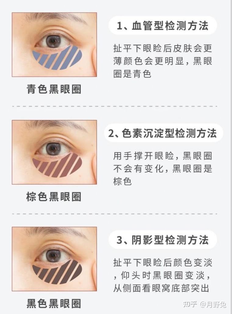 所以我立马就去找寻解决办法了!还好,黑眼圈在众多眼部问题中也不算复杂,我了解到黑眼圈大致可分为三类:色素型黑眼圈、血管型黑眼圈、结构型黑眼圈。