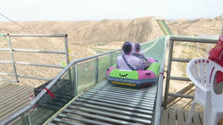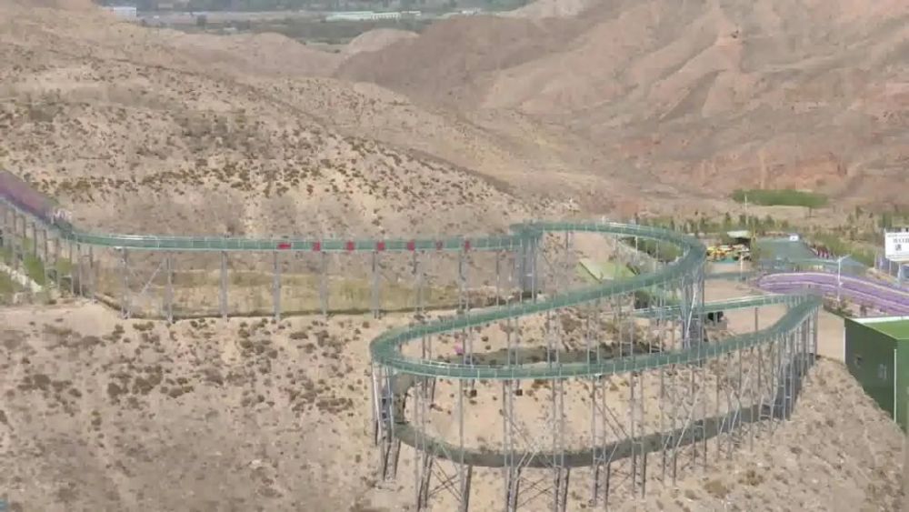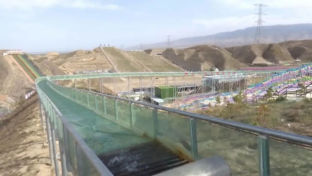 蜿蜒曲折的高空玻璃漂流,游人如织;清澈的水流将气阀送往“时光隧道”等不同的场景;七彩滑草场亦是网红打卡点……此外,还有充满西北风情的骆驼、真人CS等项目,飓风飞椅、海盗船等则成为了儿童们的乐园。景区内亦设有四合院、美食街等饮食场所。